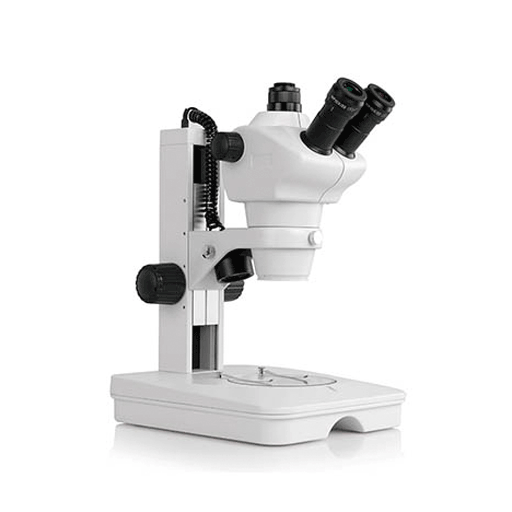 پایه مدل از نوع ستون میلهای(Pole Stand) است که قابلیت تنظیم ارتفاع هد را فراهم میسازد. این پایه برای کاربردهایی مانند مونتاژ قطعات الکترونیکی یا استفاده در جواهرسازی بسیار کاربردی است، چراکه فضای بیشتری را برای قرار دادن نمونه فراهم میآورد.